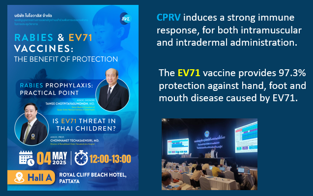 Symposium 2 was honored by Assoc. (Honor). Prof. Tawee Chotpitayasunondh, M.D. and Assoc. Prof. Chonnamet Techasaensiri, M.D., who updated the audience on the epidemiology of Enterovirus 71 (EV71) and delivered valuable clinical insights on the EV71 vaccine and Chromatographically Purified Vero Cell Rabies Vaccine (CPRV), with a special focus on pre-exposure prophylaxis.
